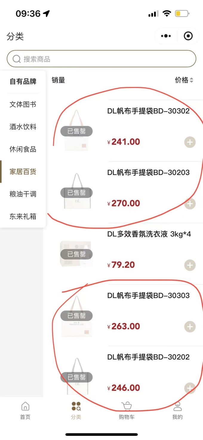 根据许昌胖东来视频号发布的消息,以胖东来的商品开发理念,推出了几款帆布手袋,希望通过帆布包传播胖东来的文化。1月5日发售后不久,售价从180元到270元的手袋全部显示“售罄”。