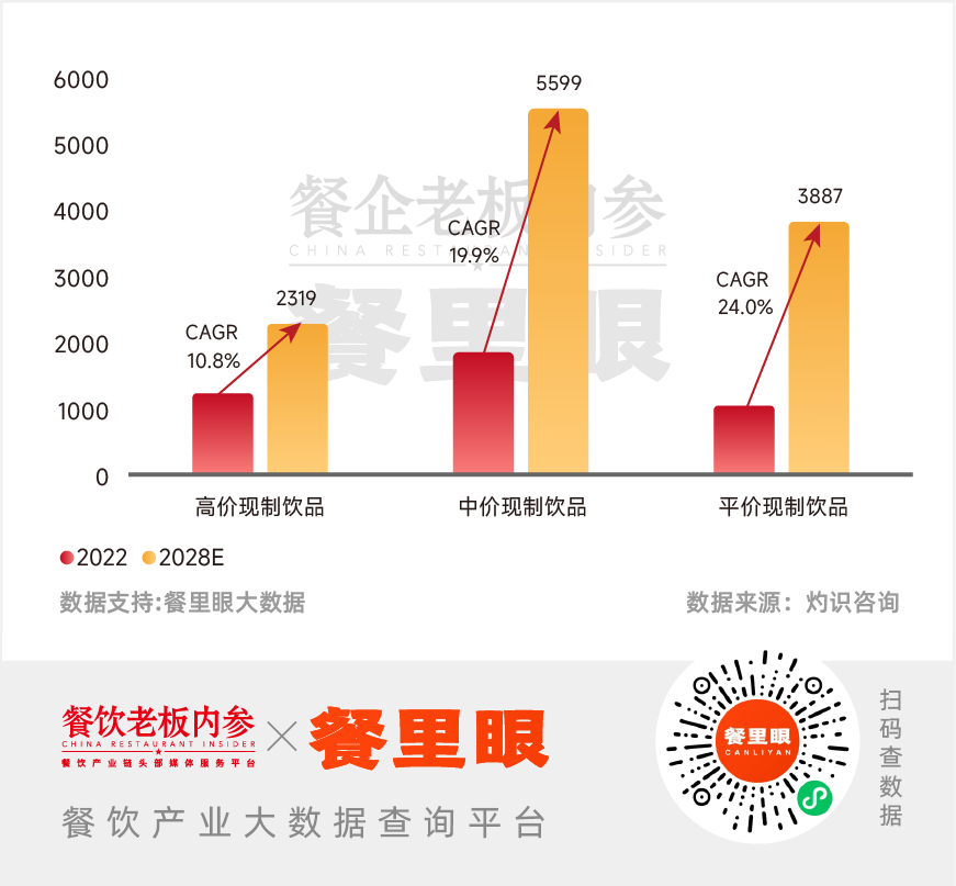 根据燃烧咨询调查分析,平价现磨咖啡是市场上最大的增量。预计2022-2028年中国平价现制饮料市场复合年增长率为24%,超过现制咖啡市场总增长率的21.2%。显然,平价咖啡还有很大的增长空间,坡长雪厚。这也吸引了有能力、有资源的头部品牌,最终将共同推动这一细分市场的发展。