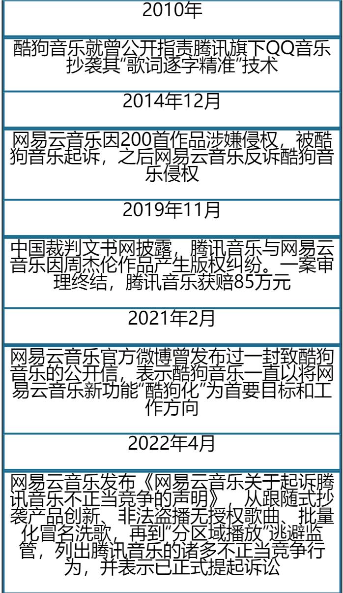 网易云音乐表示,QQ音乐抄袭了其音乐播放器的“DIY功能”,并且多年来一直抄袭网易云音乐,包括“黑胶播放界面”、“一起听”功能等。,要求QQ音乐立即停止抄袭式“创新”。、借鉴式“创意”、跟踪“更新”行为。此后,同样属于腾讯音乐的酷狗音乐也站出来加入混战,将两人对决唱成“三人戏”。