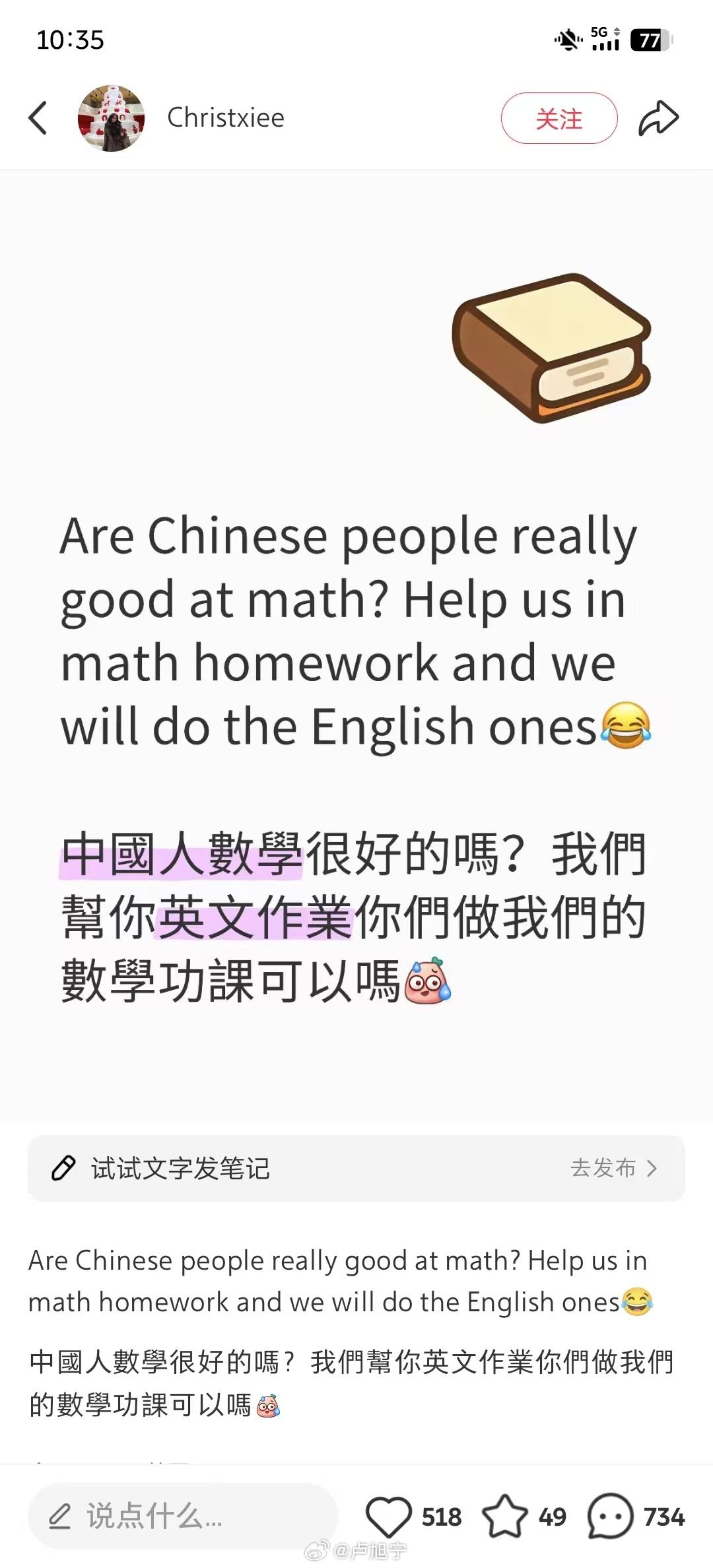 小红书,一个以生活方式和好东西分享为核心的平台,竟然成为中西普通人直接对话的桥梁。外国网友用“机器翻中文”磕磕绊绊地打招呼,而中国网友则用“中国英语”热情回应。虽然有些鸡鸭在语言上说话,但这种愚蠢而真诚的交流方式让文化碰撞更加真实和温暖。