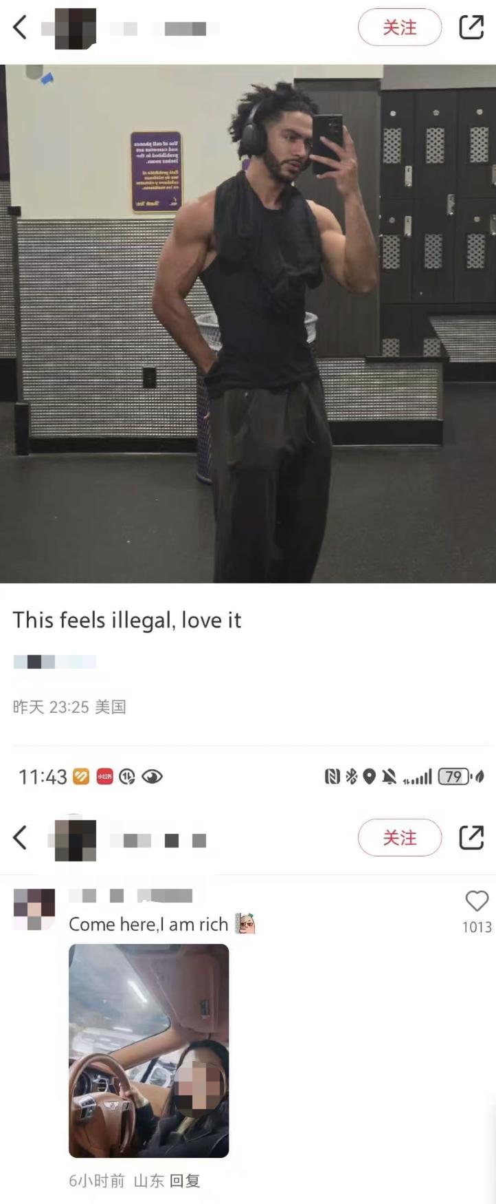 在小红书上晒出一位美国健身博主的帅照后,中国大姐立刻在楼下说:Come here,I am rich