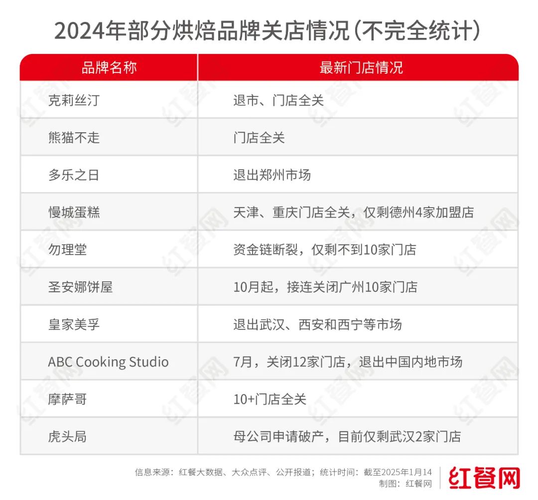 根据红餐大数据,截至2024年12月,烘焙跑道新增门店10.3万家,关闭门店9.5万家,净增长不足8000家。。