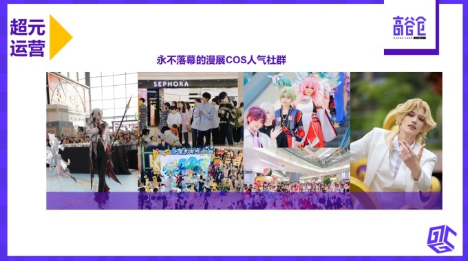 通过举办各种cosplay比赛、线下聚会、粉丝见面会等活动,coser为coser提供了一个展示自己的舞台,也为很多二级粉丝搭建了一个交流互动的平台。同时,在社交平台的帮助下,高谷仓建立了一个在线交流社区,打破了时间和空间的限制,让爱好者随时随地保持联系,分享彼此的喜悦和情感。这一线上线下相结合的社区运作模式,将使高谷仓成为二次元爱好者心目中的精神世界。