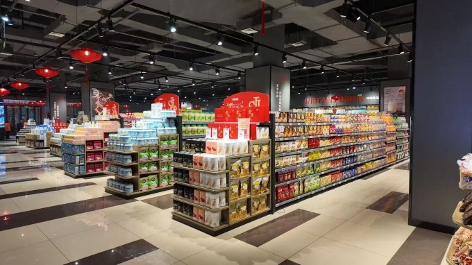 在设备设施方面,为确保商品质量,新建的日配冷链系统,对原有设备进行了全方位的维护和更新迭代,设备更新率超过95%。增加了生鲜食品、零食、商店货架等设施,配备了洋酒、巧克力、鸡蛋冷藏柜等。,满足多样化的存储需求。同时,各地区的产品分类布局也根据类别连接的相关原则进行了优化和展示,新货架也降低了高度,方便了客户选择,同时也让商品展示更加美观和有层次感。