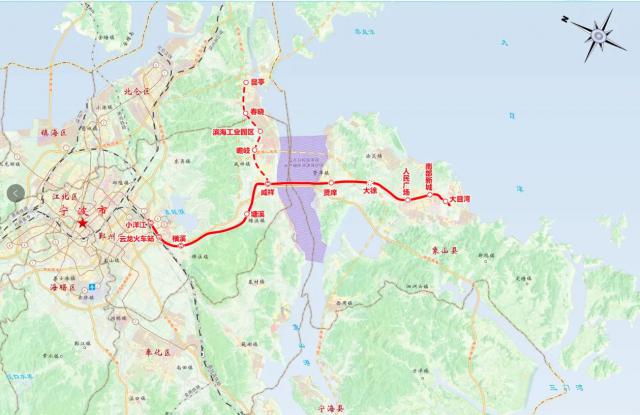 城市铁路象山线连接宁波城区和象山县,工程自地铁。 4、7 小洋江站引出号线换乘站。经云龙、横溪、塘溪、咸祥之后,他们穿越象山港。后经贤、大徐进入象山县设立人民广场站,南部新城站后至线路终点大目湾站,全线约长。 61.45 公里,共设 10 座车站。