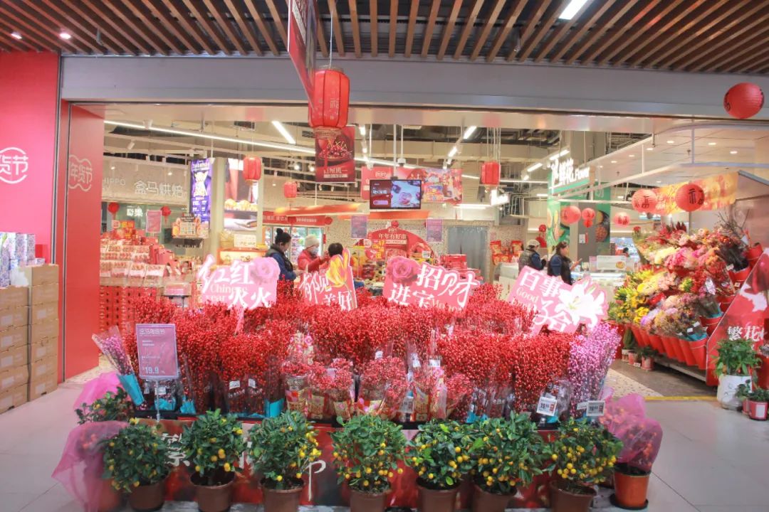 早上,记者在盒马鲜生中信泰富万达广场店门口看到,各种年夜花排列整齐,不仅有郁金香、玫瑰、冬青、蝴蝶兰、银柳、澳梅,还有丰满的金果、金桔等。,这是一种快乐。“好看又好闻,创意独特。我准备给亲戚朋友组合几套‘熏银柳’福桶。”唐女士说。