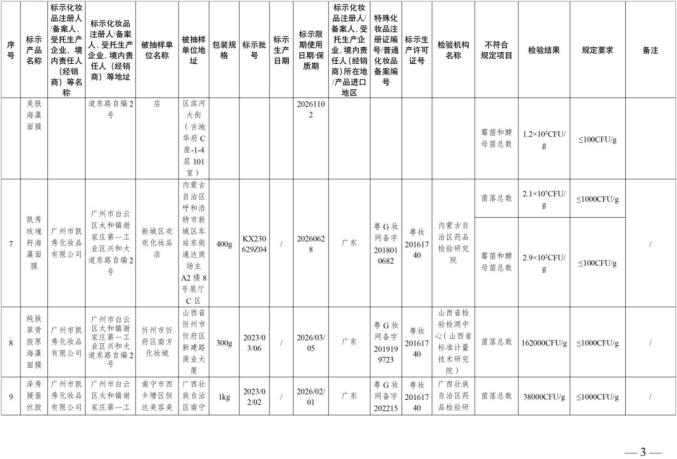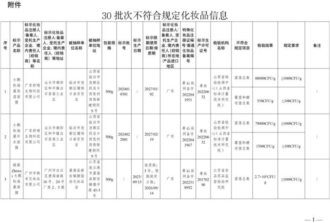 在2024年全国化妆品抽样检验工作中,经山西省检验检验中心等单位检验,商品标签名称为小颗粒藻类保湿面膜等30批化妆品不符合要求(见附件)。