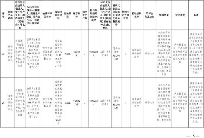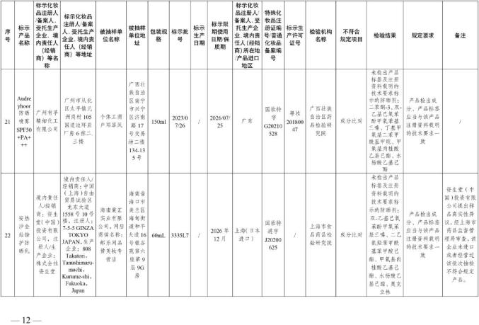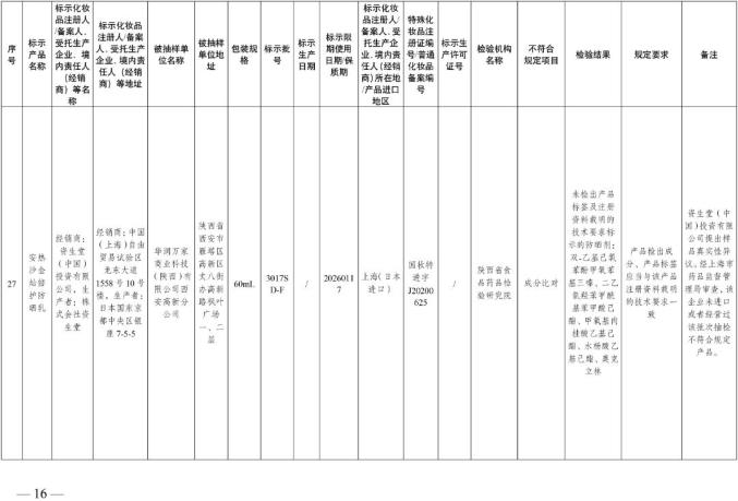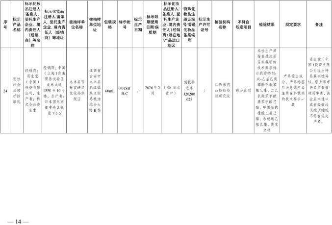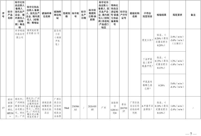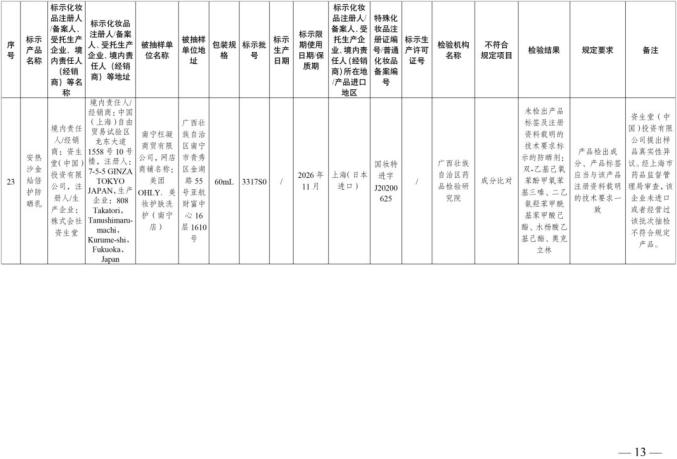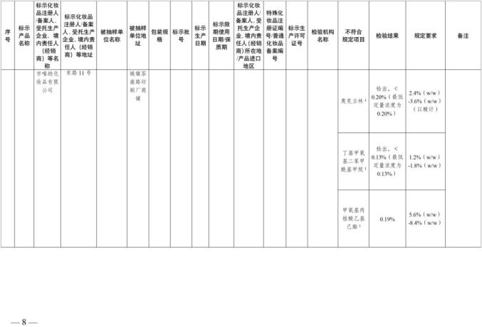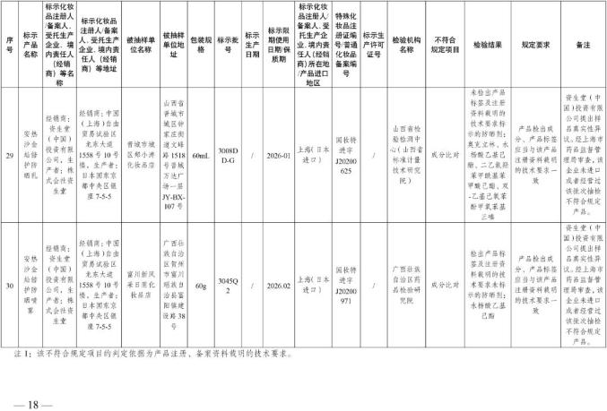 国家美国食品药品监督管理局关于30批不符合化妆品要求的通知