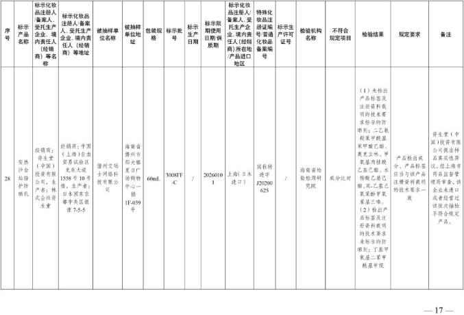 配件:30批号不符合化妆品信息要求