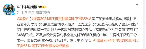 2024年,波音共交付348架飞机 只有不到一半的空客