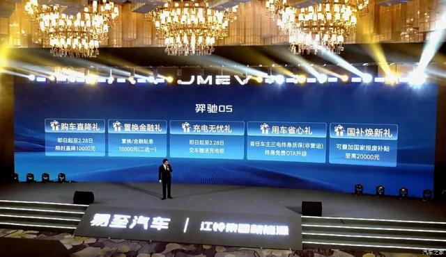 新能源羿驰江铃集团 05正式上市,羿驰 05 共计推出 3 款车,售价 12.98-17.98 一万元。从现在开始 2 月 28 一天,限时狂降 1 万元,更换或金融贴息, 1 万元,可叠加我国保费补贴无上 2 一万元。位于紧凑型纯电动汽车。