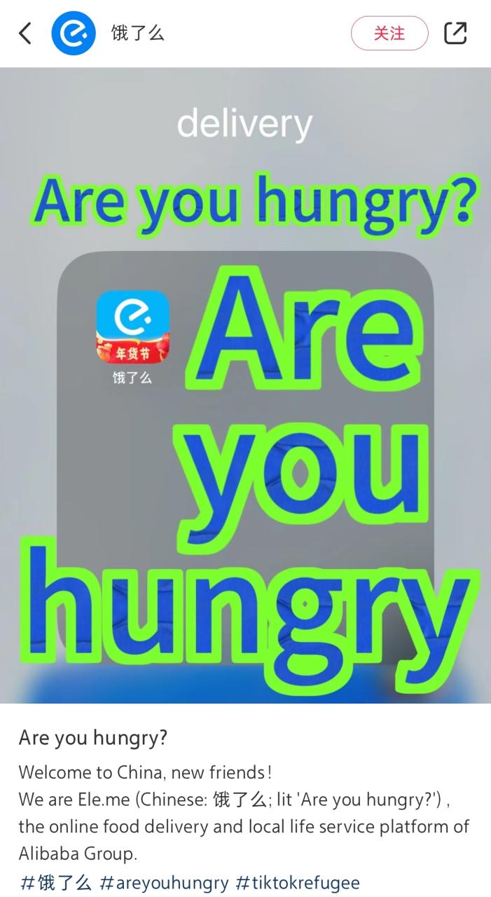 为加深外国人的印象,饿了么官方帐号,在小红书上发布笔记,问网友:“Are You Hungry?并且在评论区抽奖。