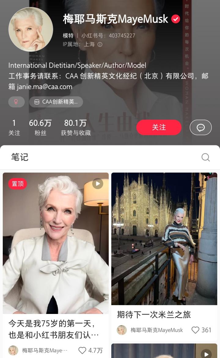 比如姆巴佩、金卡戴珊、亚当等欧美顶尖人物都注册了小红书账号;马斯克的母亲:梅耶马斯克在这里高韧性地冲浪,吸引了60多万粉丝。