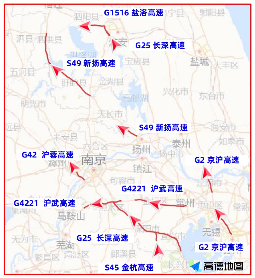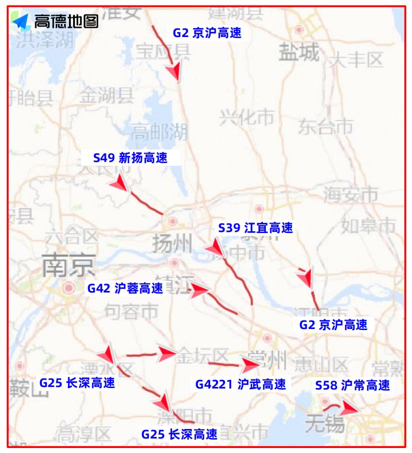 根据高德地图交通大数据预测,2月4日(正月初七)春运高峰期江苏省返程高峰,部分高速路段,如G25长深高速、S58沪常高速、S39江宜高速等。,容易拥挤缓行;建议开往以下道路的车主时刻关注路况,及时避免拥挤。