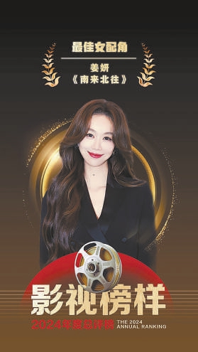 近日,由北京日报报业集团承办的《影视榜样2024年总评榜》揭晓,演员姜妍凭借在电视剧《南来北往》中饰演姚玉玲获得最佳女配角荣誉。拿着奖牌,姜妍感谢电视剧《南来北往》让大家看到了自己的成长。她承认:“榜样不仅是一种荣誉,也是激励我用行动诠释未来梦想的动力。祝大家新的一年继续热爱,充满期待。”