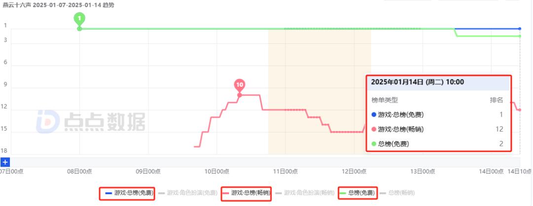 一月七日下午十六点,预下载正式开始。,当天在iOS端获得22.3万元,第二天(1月8日)的日下载量略有增加到22.5万元。有了这个结果,游戏一举拿下。iOS免费榜第一名,并且继续保持这个位置霸榜5天,现在已经滑落到免费排行榜第二,但是仍然是iOS游戏免费排行榜TOP1。