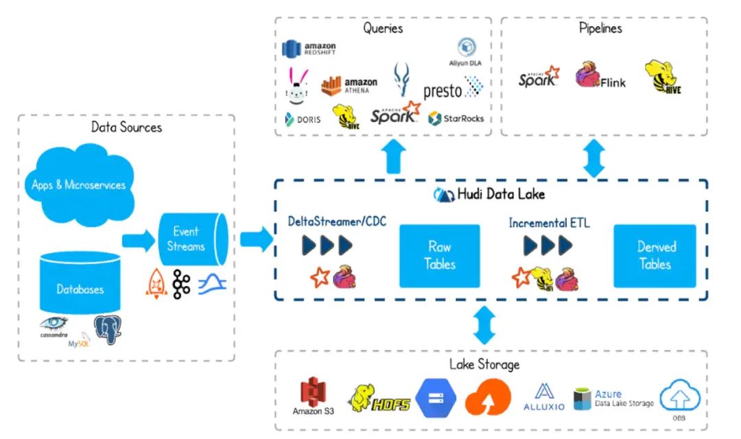 Apache Hudi 目的是应对实时动态摄入和分析的考验,尤其是在需要频繁更新的环境中。它的结构支持高效数据摄入的写入和升级存储。 (WOS) 并用于查询、读取、提高存储和存储。 (ROS),这样就可以实现数据集的最新视图。