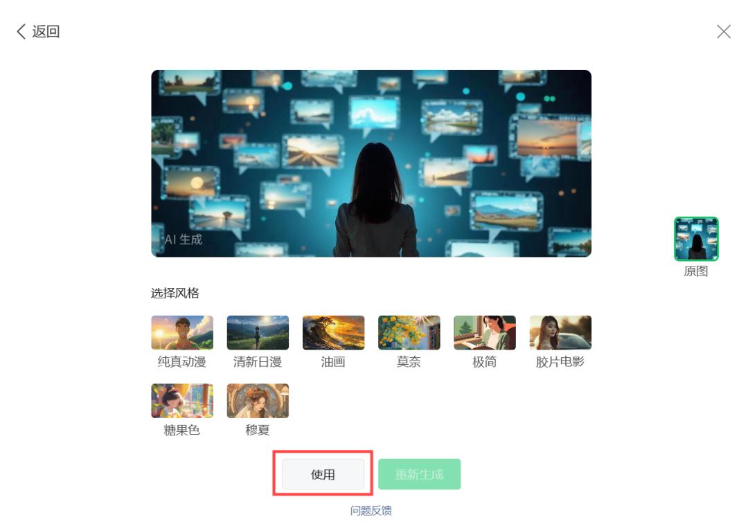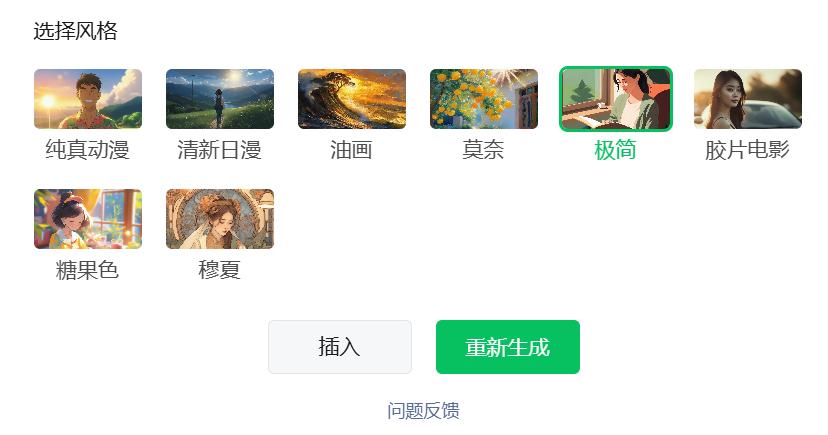 如果对于生成的图片风格不满意,你还可以换一种风格重新生成,公众号提供了以下8种风格。