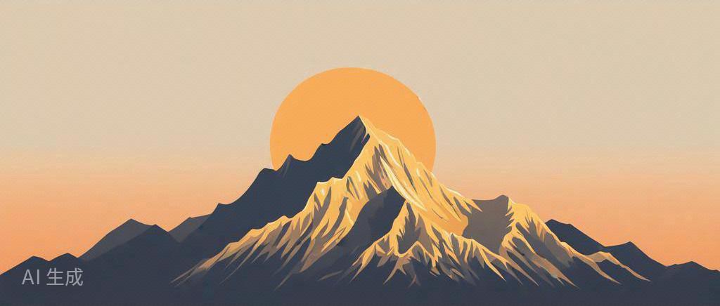 提示词:日照金山,极简风格,用简洁流畅的线条勾勒出山峰轮廓,色彩要纯粹、鲜明