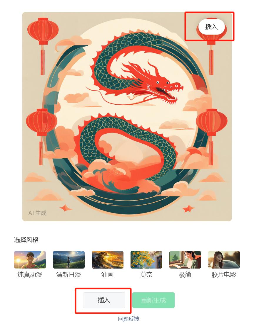 而且目前不能同时创建多个生成任务,只能一个个生成。要注意的是,没有插入的图片只会显示在AI配图生成页面的历史记录,但最多只能保留最近三次生成的图片,再之前生成的图片就找不到了。