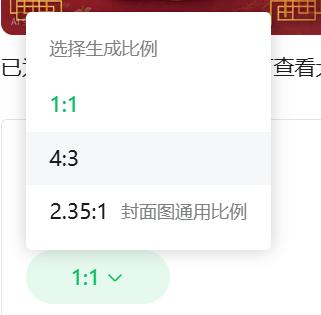 图片比例则有三种可选,1:1、4:3,以及公众号特有的封面图比例2.35:1,这个比例在其他AI生图工具中并不常见。