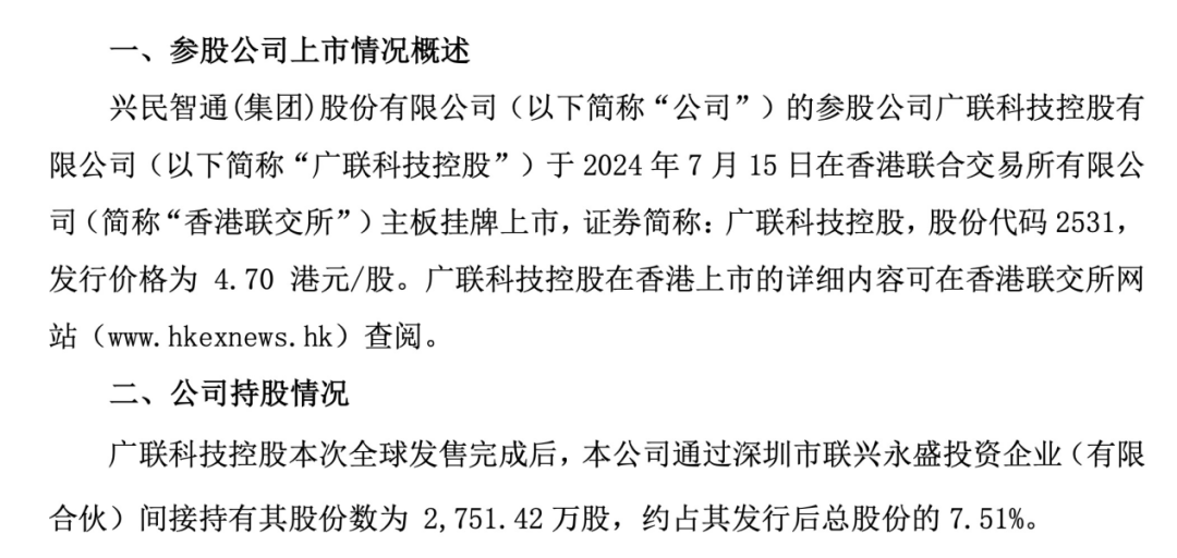 此外,值得注意的是,广联科技控股背后还有一家a股公司——兴民智通,在广联科技控股上市后拥有7.51%的股份。