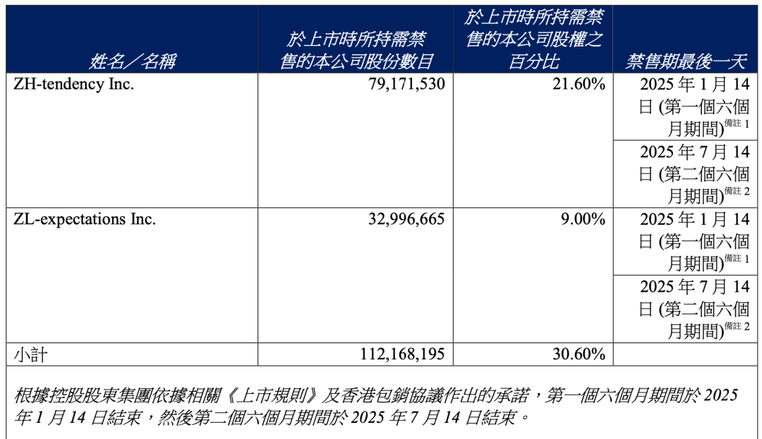 根据香港证券监督管理委员会披露的数据,1月2日,上述77.76%的股份仍处于禁售期,共有12名股东。
