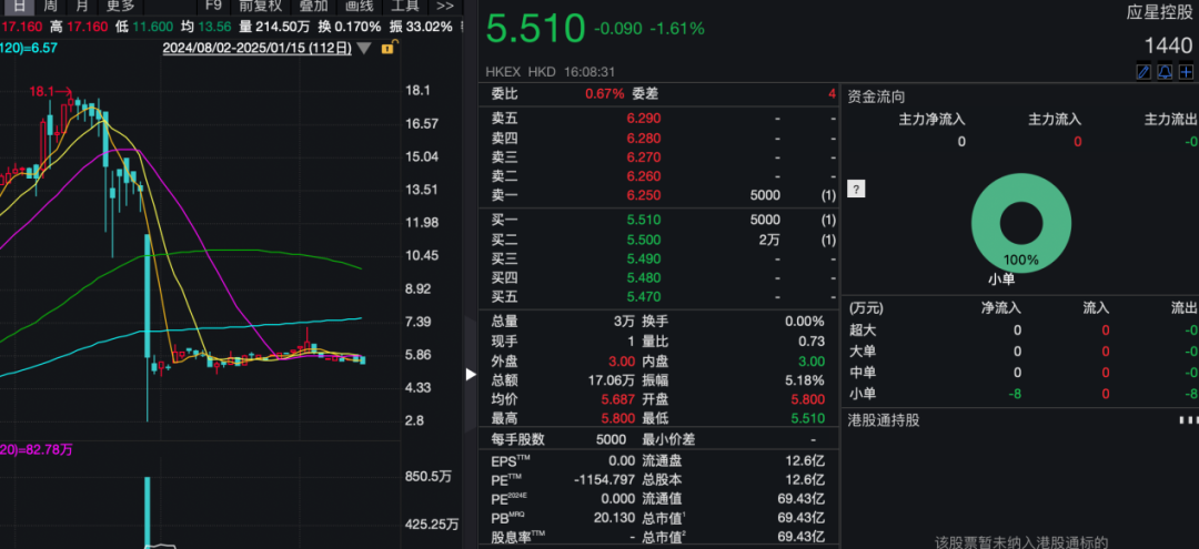 2024年11月27日,少数股东在应星控股的持股比例达到91.35%,消息公布后,应星控股在11月28日单日下跌了56%以上。
