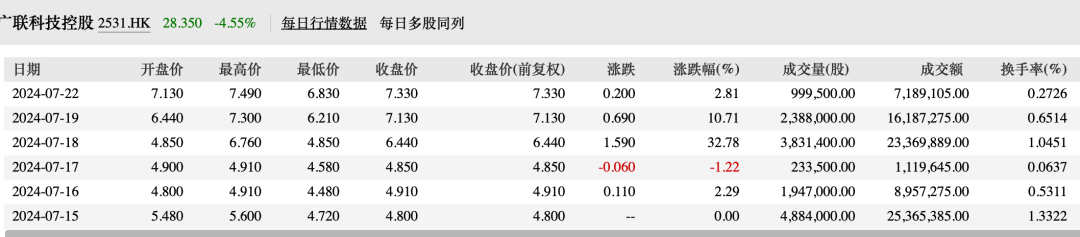 WIND数据显示,自上市以来,广联科技控股的日均成交额只有599万港元。不要说这个日均成交额在a股市场,其实在港股市场并不高。