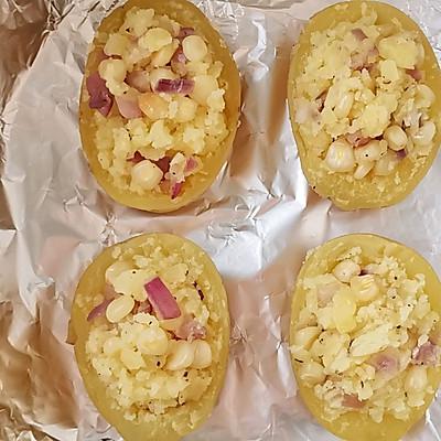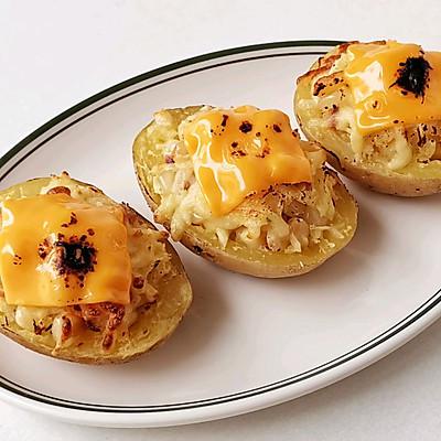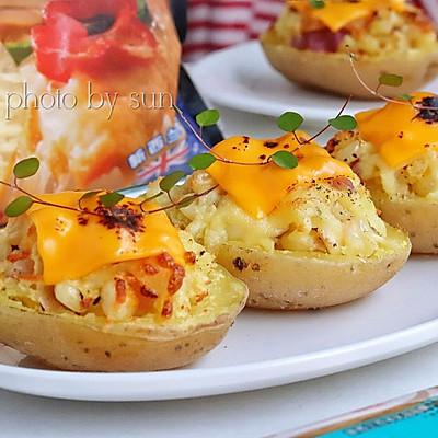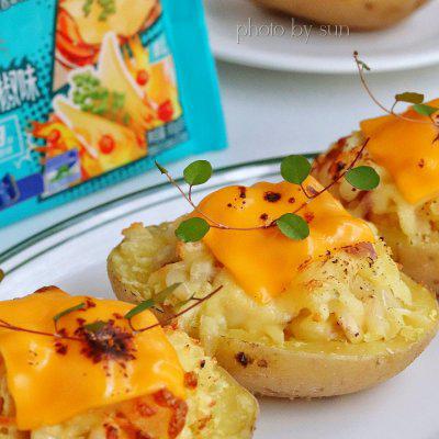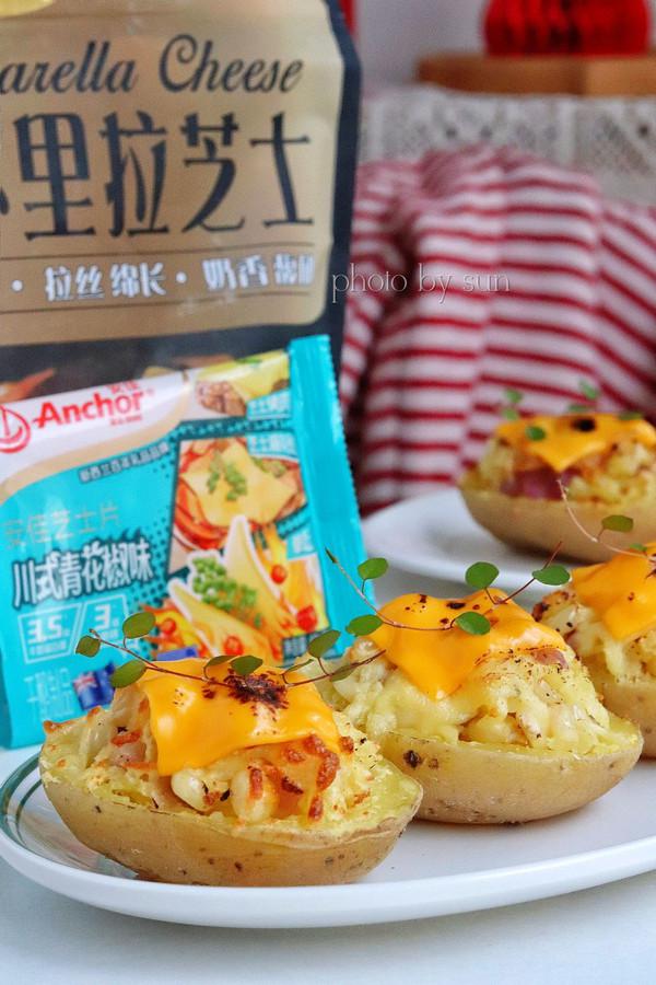 11、双层奶酪烤土豆,好吃又有川式风味。 你们必须尝试一下 ~