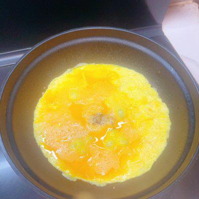 7、倒入鸡蛋,继续翻炒,快熟的时候,淋一圈油,好吗?
