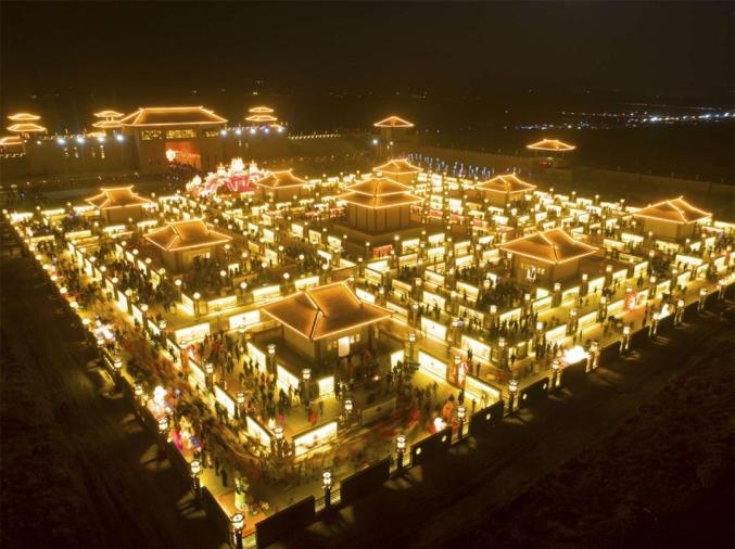 甘州黄河灯阵,又称九曲黄河灯阵,是甘州区碱滩镇古城村流传千年的历史文化遗产,也是春节期间当地群众民俗文化活动的代表。黄河灯阵是一种组织严密、规模庞大、附属活动多样的民间活动(如安排结束后闹社火,在阵门口焚烧秦桧雕像后游阵)。灯阵布局类似于八卦阵。悬挂的365盏灯制作精美,人物多样,内容丰富,参与面广。近年来,随着黄河灯阵的宣传、传承和发展,越来越多的人参与其中。黄河灯阵真实地记录和体现了当地人民的生产生活、人情习俗、情感追求和价值观。