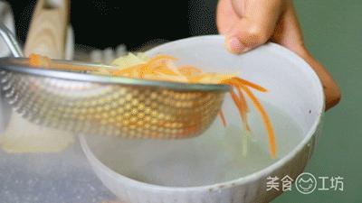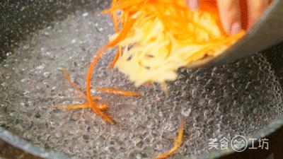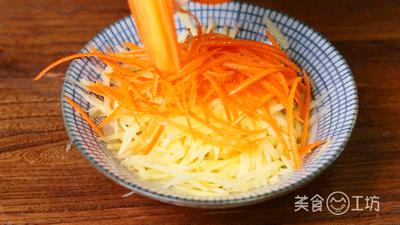 2. 将土豆丝、胡萝卜丝放入沸水锅中焯水,然后捞入冷水中过凉。