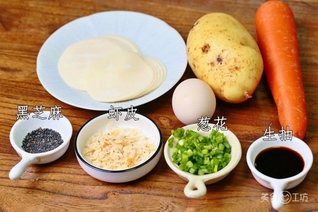 土豆 100g/ 胡萝卜 30g/ 饺子皮 8 张