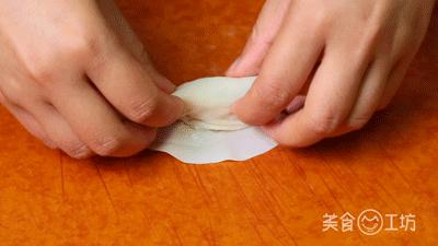 一提起包饺子,兜一勺馅,饺子皮对折,用虎口夹紧,同时双手向中间一挤,圆圆的大肚子就完成了!