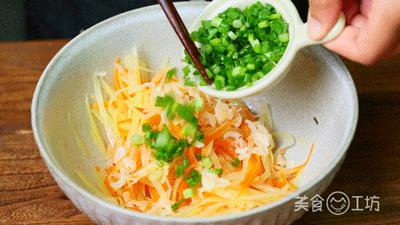 当然,除了土豆胡萝卜丝,还可以换成各种馅料,比如韭菜鸡蛋粉丝、西葫芦鸡蛋、青菜虾等。相比装满肉的饺子,脂肪含量低,健康,多吃点也没关系。