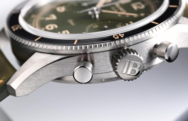 空军司令的钛壳被大规模拉丝,打磨在手表的耳朵边缘。值得注意的是,空军司令的耳朵非常细长,这是古董运动手表的特点,增强了空军司令的复古气息。还有 13.7 厚度(42.5)mm 版本),对于一个自动计时表来说,并不厚。