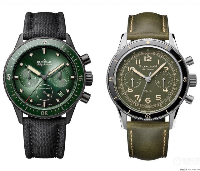 宝珀 极光绿(左)和空军司令绿盘限量版50°深潜器(右)