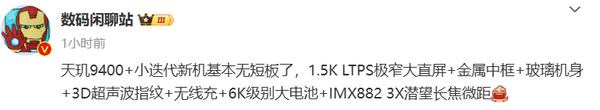 1 月 15 日本,知名爆料者数码聊天站透露,vivo X200s 硬件几乎没有缺点,这台机器将配备一块。 1.5K 分辨率的 LTPS 极窄的大直屏,内置 6000mAh 超大电池等级,后置电池 5000 优质主摄加万像素 5000 潜望式长焦摄像头,万像素三倍光学变焦,索尼是长焦的传感器之一。 IMX882。