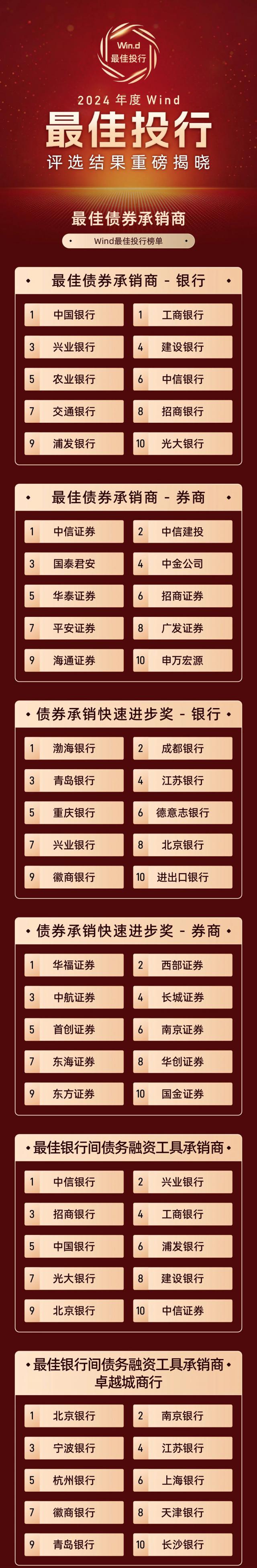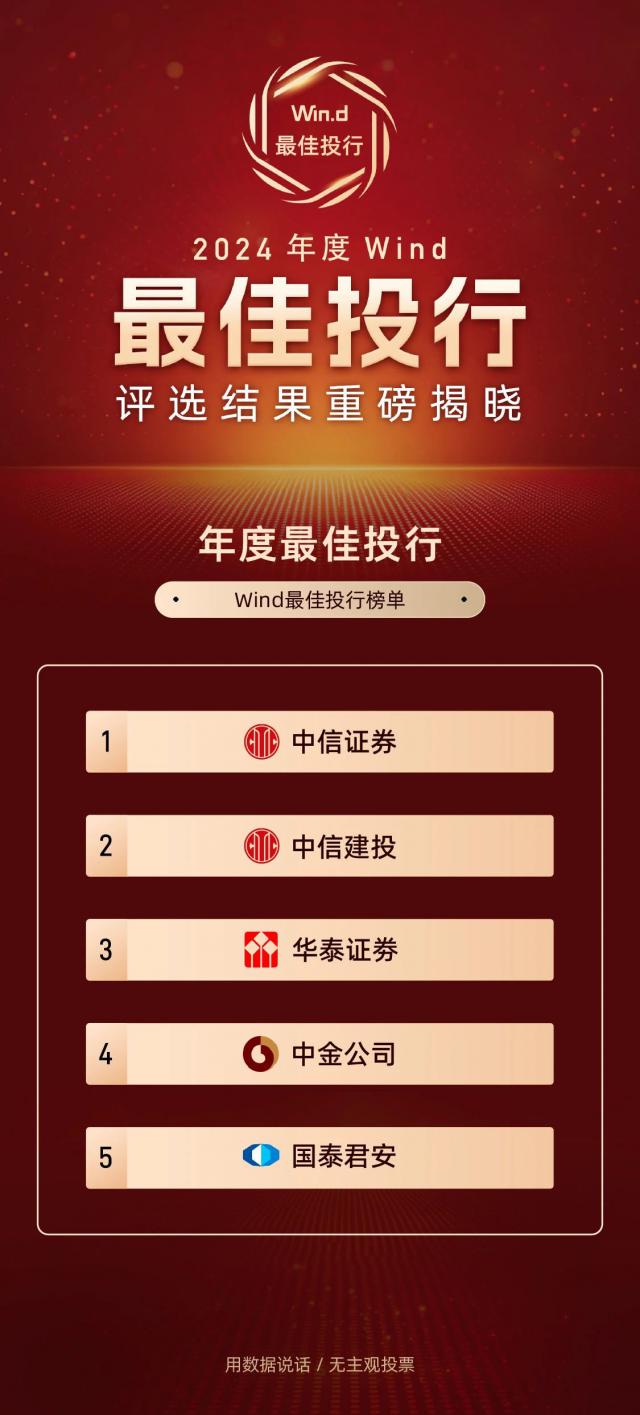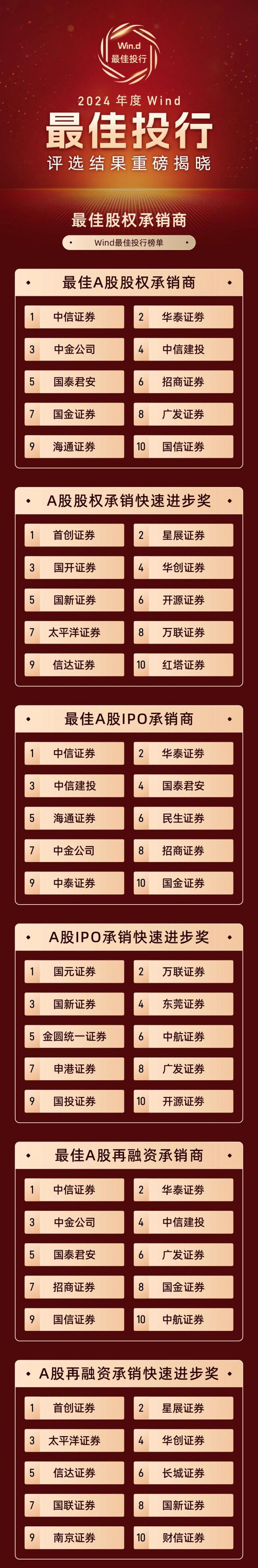 Wind最佳投行2024年度评选结果隆重公布