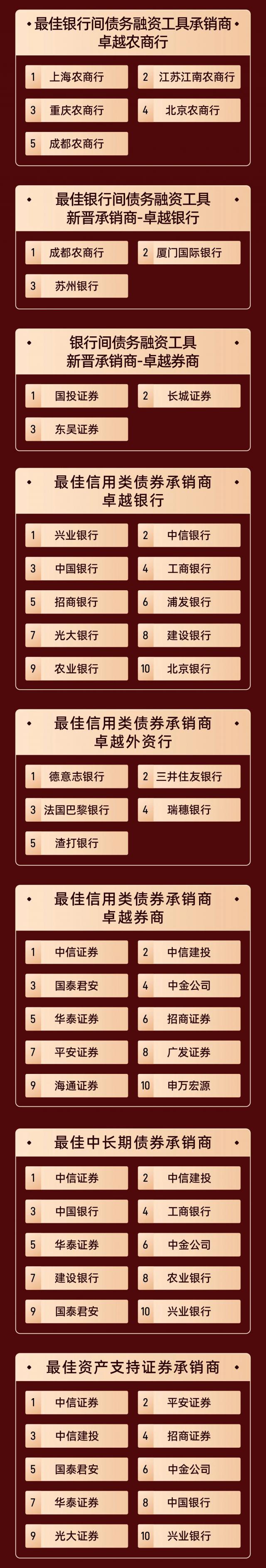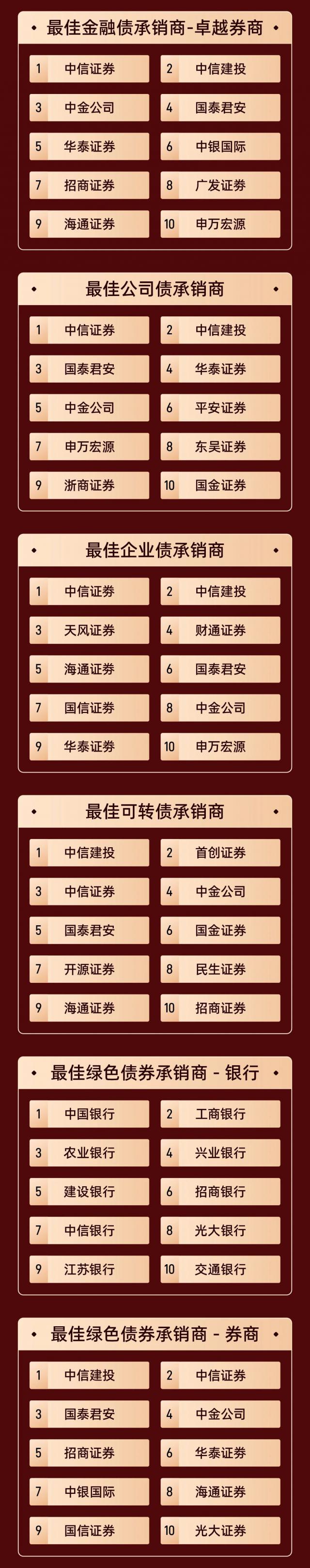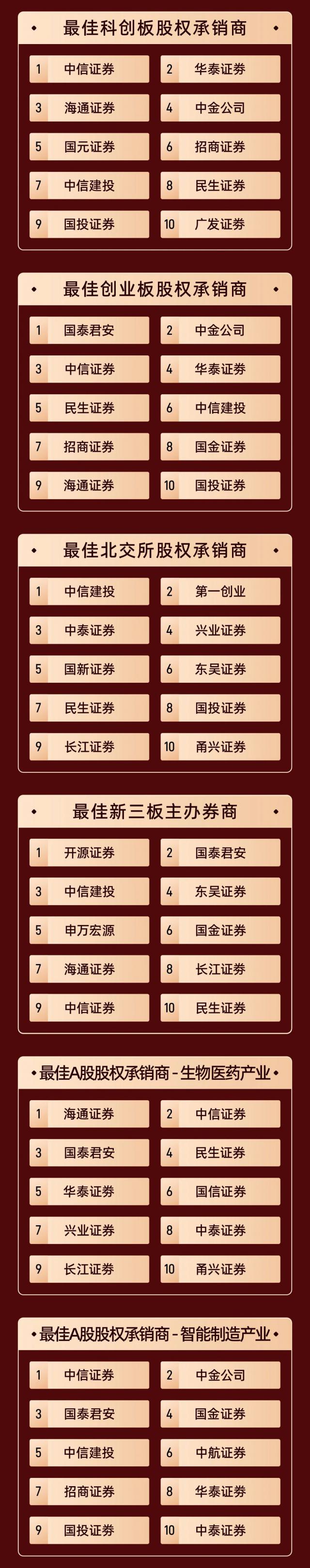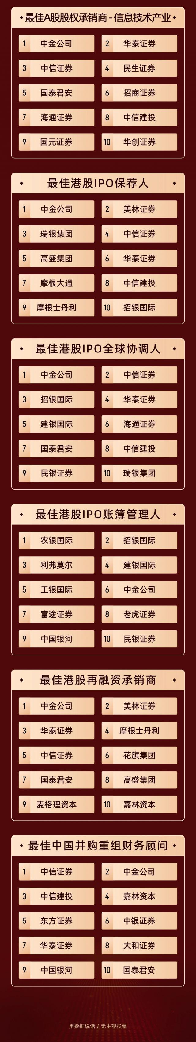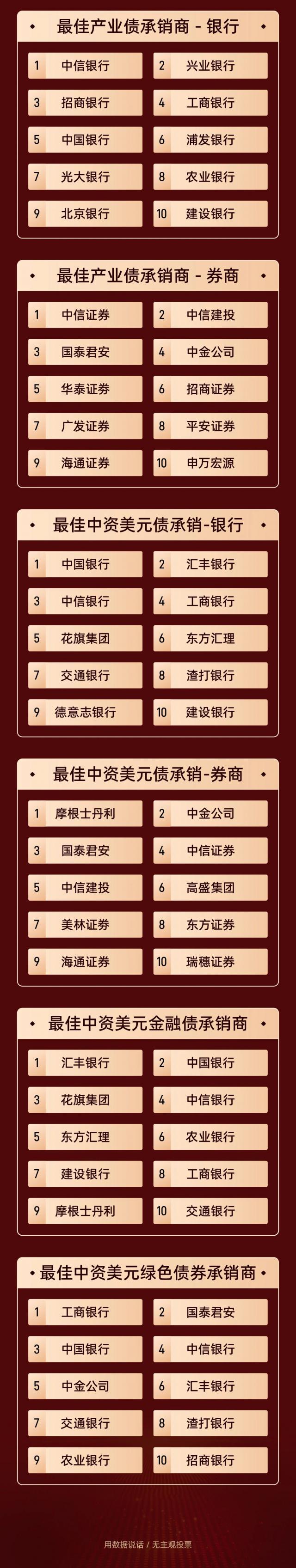 本次评选的结果旨在准确客观地反映中国证券市场各机构的发行和承销能力,向这些为中国金融市场稳步发展做出贡献的机构致敬!