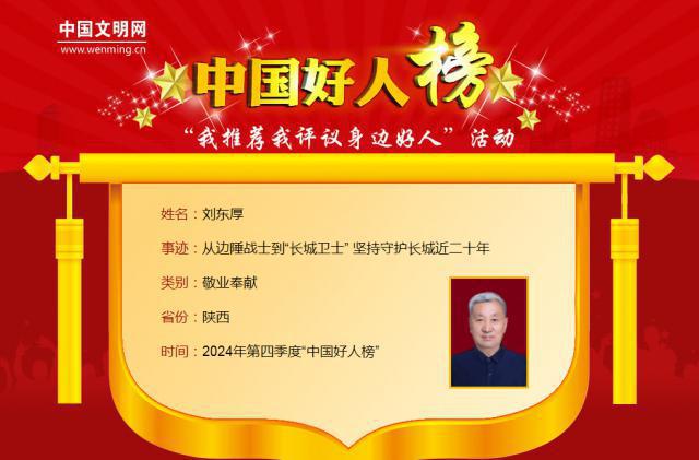 刘东厚荣登榆林市 2024 第四季度“中国好人榜”