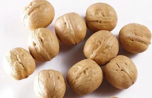 未漂洗的核桃壳变黑变黄,浸泡在过氧化氢或氨水中的核桃皮变得更白更有光泽。这种经过化学原料处理的核桃,吃多了会引起呼吸道疾病,导致免疫力下降。