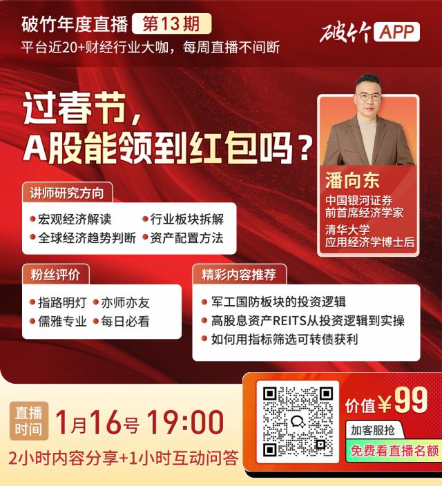 所以,请锁定今晚 7 点击直播,请潘向东博士为大家带来“春节”,A 股票可以领红包吗?主题直播。