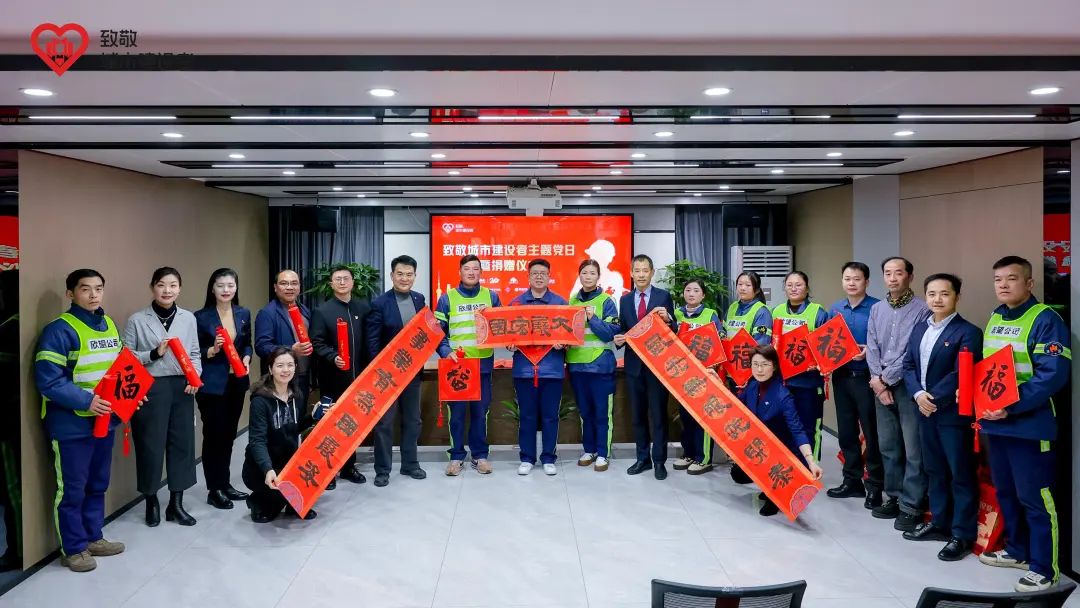 值此新年之际,上海新望环境卫生服务有限公司(以下简称新望环境卫生)的工人们收到了一份特别热心肠的礼物。1月14日下午,“向城市建设者主题党日和捐赠仪式致敬”在新望环卫举行。500份带有保温杯、保温帽、5公斤优质大米的致敬温暖包和400份手写的春联祝福,为城市建设者送去了新年的问候和祝福。