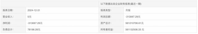 据 2024-12-31 财务报告显示,目标企业暂无营业,资产总额为 5.61 债务总额为亿元 7.82 万元,所有者权益为 5.61 亿元。