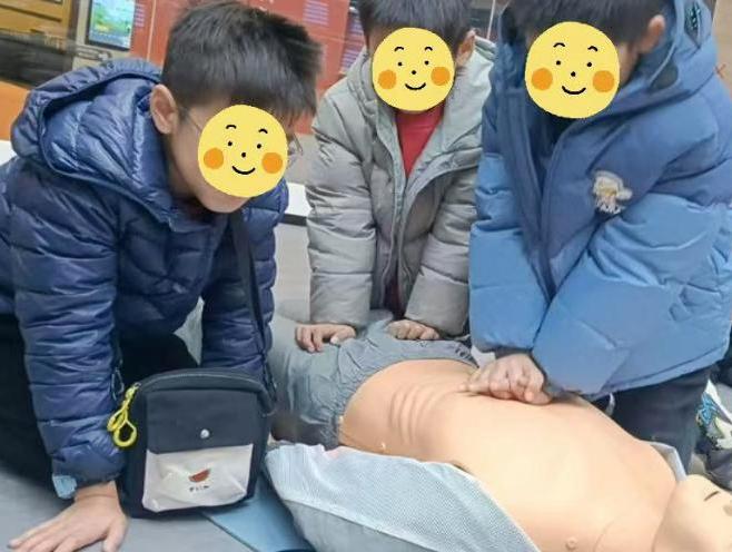 在课程中,亲子在心肺复苏的训练体验中显得特别认真。讲师详细演示了如何判断患者的想法和呼吸。父母和孩子开始效仿手术,拍拍“病人”的肩膀,大声喊叫,仔细观察“病人”胸部的起伏。当我们确定需要心肺复苏时,在讲师的指导下,我们轻轻按压胸部中央和两个乳头的连接水平(即胸骨下半部分),双手掌根重叠,手指相扣,手掌翘起,上肢伸直,上身前倾,以髋关为轴垂直压下,按压深度为5~6厘米,按压频率为100~120次/分,轻轻按压30次,然后进行2次人工呼吸。小孩虽然力气不大,但也努力模仿。
