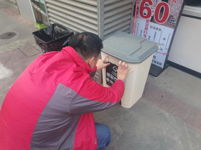 同时,街道组织人们携带海报、器皿标签等材料,对沿街商铺的垃圾分类设施进行全面检查,发现现场整改硬件漏洞,确保符合规范要求。