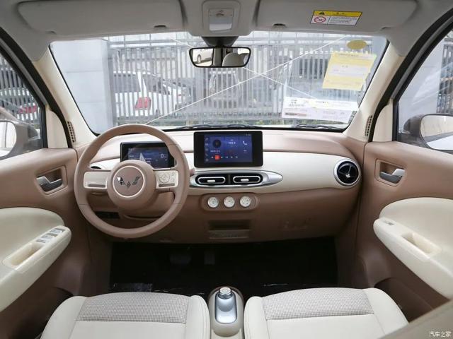 内饰方面,宏光 MINIEV 四个版本选择了“萌酷浪漫”的设计风格,配色以淡淡的巧克力棕为主色调,与奶酪白相结合。配置方面,该车配备了 Autohold、电子驻车、8 英尺浮动中控面板(支持蓝牙电话、播放歌曲、车载收音机等娱乐功能)、7 彩色液晶仪表屏,倒车影像,后倒车雷达等。与此同时,新车可以实现无感进入。 / 锁定汽车,无感觉启动,智能上下电等功能感觉;手机 App 远程连接功能更丰富,可以完成车况查看、远程控制门锁、启动汽车、远程启动空调、预约充电等操作。与此同时,这辆车提供 4 各种性能模式,3 随意切换各种能量回收方式。