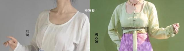 从初唐到盛唐,这种短到胸口的垂领衫一度流行起来,衣领可以分为坦领。(U 领)、鸡心领款式,即每个人都可以看到各种令人脸红的壁画中出现的款式,那时候经常可以看到这种服装。